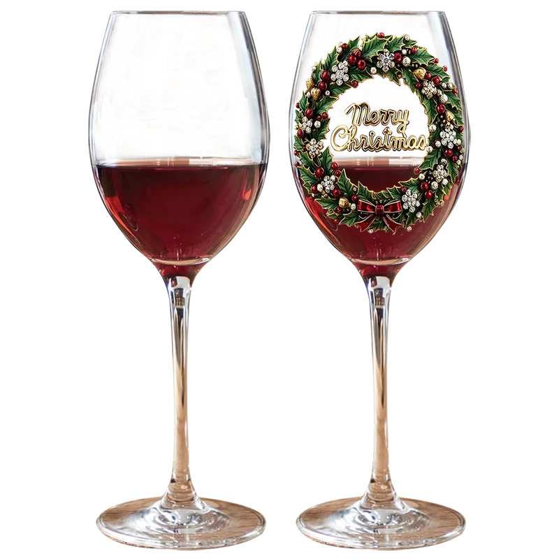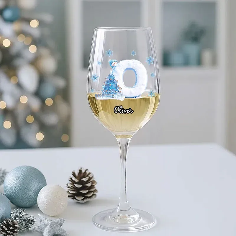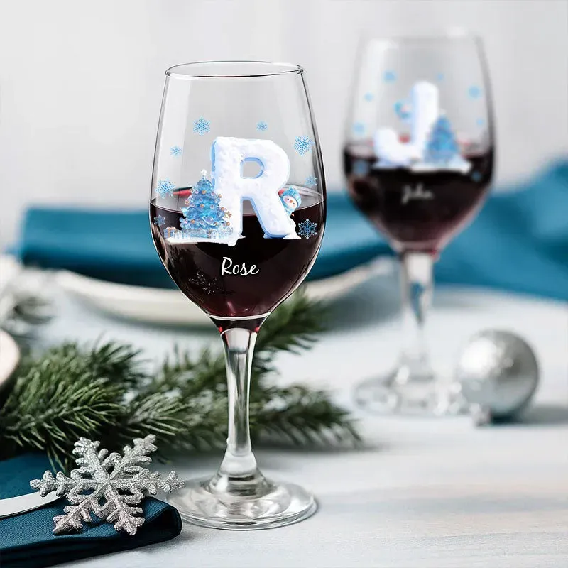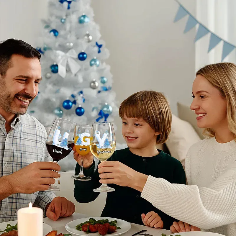Merry Christmas - Personalized Family Wine Glass With Long Stem