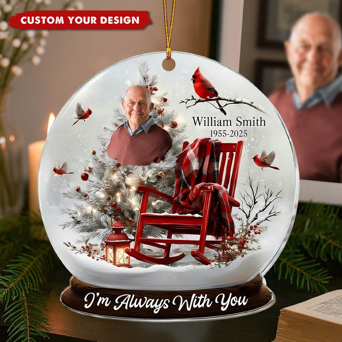Personalized Memorial Ornament with Photo - Cardinal & Rocking Chair - I'm Always With You - Custom Acrylic Keepsake