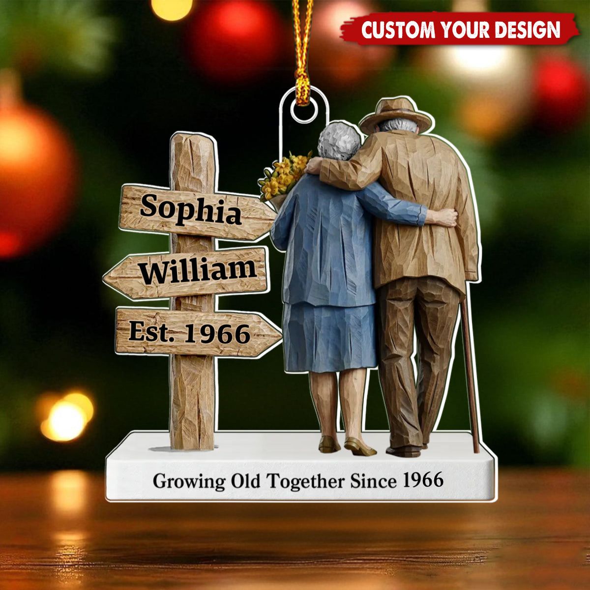 Old Couple Sign Post - Personalized Acrylic Ornament