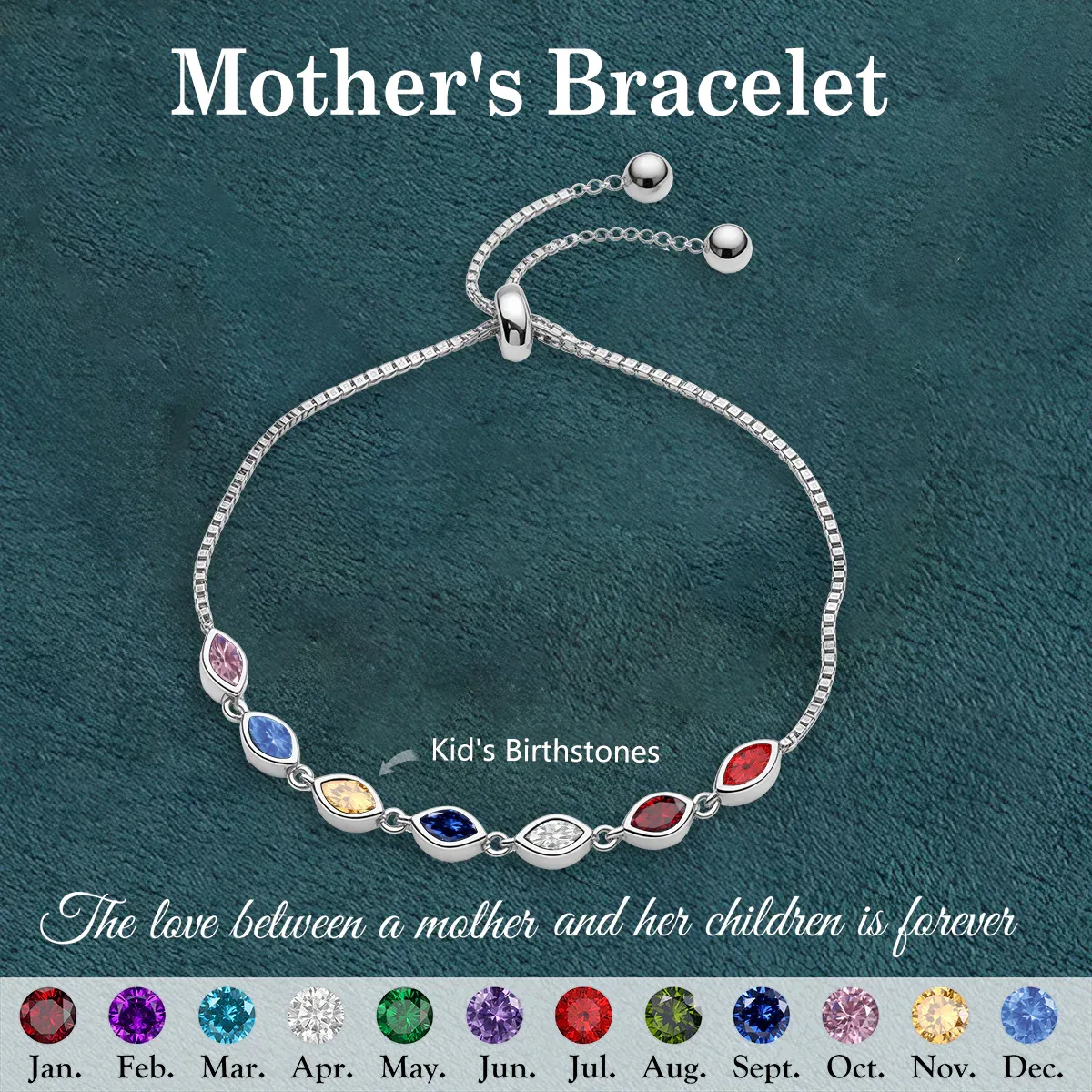 ✨ Create a meaningful gift with our personalized birthstone bracelet! 💖 Each bracelet can be customized with color and birthstones, making it the perfect present for your lover, mom, grandma, friends, daughters, or yourself. PRODUCT DETAILS: 🎁 Recipients: Wife, Mother, Wife, Mom, Mum, Best Friend, Sister, Grandma, Daughter, Aunt, etc. 🎉 Occasions: Mother's Day,Birthday, Anniversary, Christmas, Valentine's Day,Party, Daily, etc. PERSONALIZATION:
